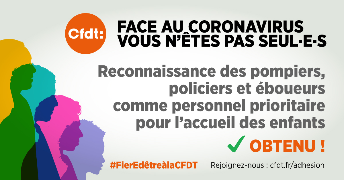 Reconnaissance des pompiers, policiers et éboueurs comme personnel prioritaire pour l'accueil des enfants